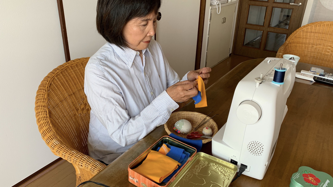 「「鬼ごっこ」をしている皆さんを思いながら裁断、縫製にひと針ひと針心を込めて作りました。」