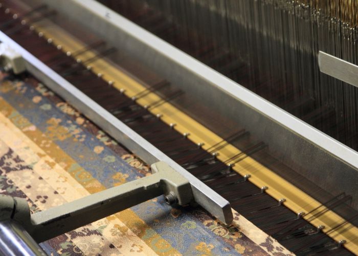 金らん(金襴)は、天正年間 (1573~92)に明より伝来。高級織物の名産地、京都・